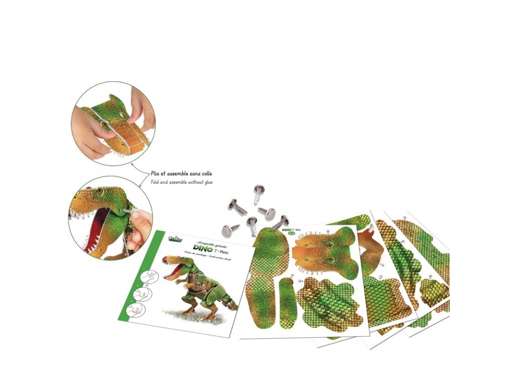 3D model Dino T-Rex 6+Zostav si obrovského tyranosaura!Jedinečná kreatívna súprava od francúzskej značky Crea Lign umožní deťom zostaviť si 50 cm dlhý model T-rexe! Deti si najskôr vylúpnu kusy modelu, zohýbajú ich a následne spoja priloženými kovovými skrutkami podľa návodu, a to úplne bez lepidla. Po dokončení si dinosaura vystavia ako dekoráciu alebo ho použijú ako kulisu na svoje hry.S Crea Lign sa deti učia nové technikyStavaním 3D modelu dinosaura si deti rozvíja jemnú motoriku, logické myslenie aj priestorovú predstavivosť. Kreatívna súprava pre deti je kvalitná a bezpečná, ako všetky výrobky francúzskej značky Crea Lign. Jej cieľom je vyvíjať kreatívne potreby a hry, ktoré podporujú rozvoj detí a umožňujú každému z nich nájsť to, čo ho baví.Dodatočné parametre