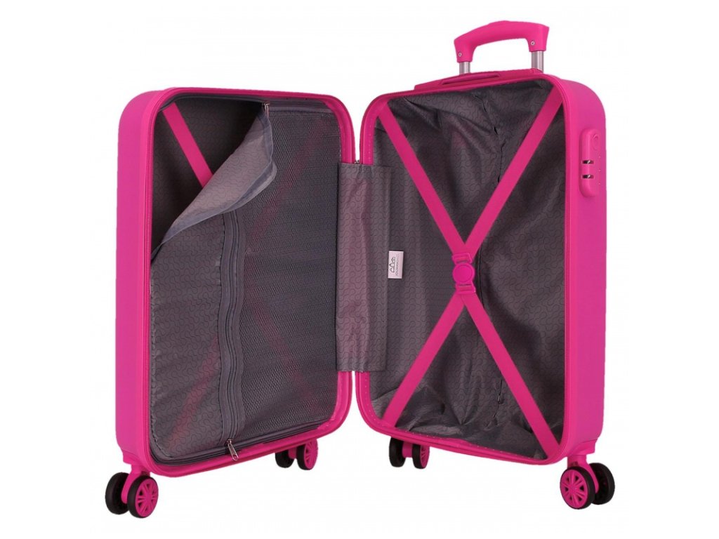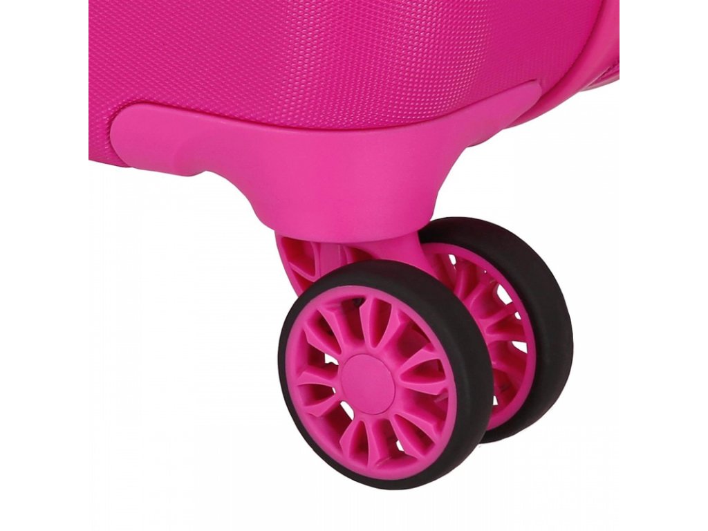 S rozmermi 55x38x20 cm a objemom 34L poskytuje dostatok priestoru na všetky nevyhnutnosti, ktoré vaše dieťa potrebuje na cestách. Kufor je vybavený štyrmi otočnými kolieskami o 360°, čo umožňuje plynulý a ľahký pohyb v akomkoľvek smere. Teleskopický výsuvný systém a plastové madlá uľahčujú prenášanie.