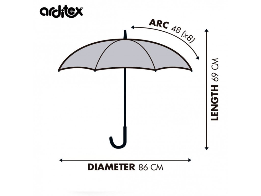👉 Priemer dáždnika je 86 cm, dĺžka v zatvorenom stave 69 cm, a jeho 8-panelová konštrukcia spĺňa európske bezpečnostné normy. Biela plastová rúčka a zakončenia s logom Real Madrid dodávajú elegantný a oficiálny vzhľad.
