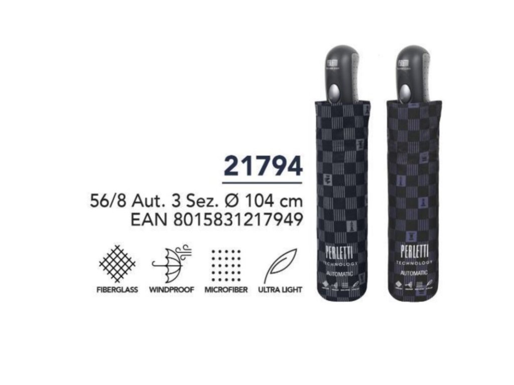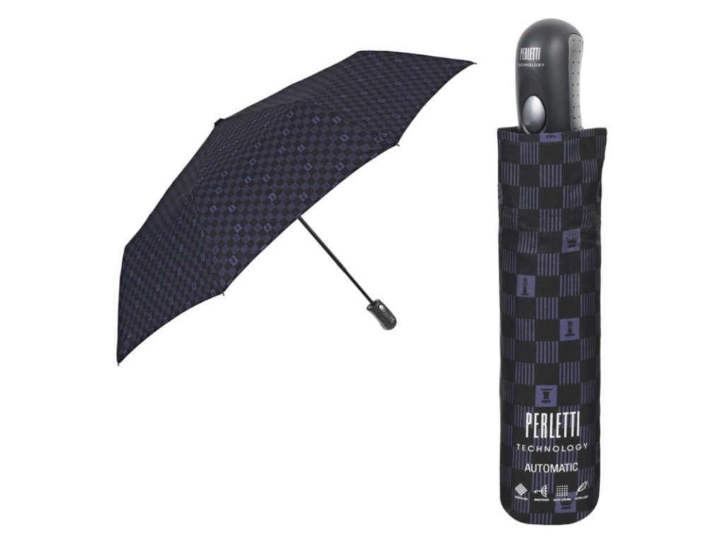 Tento elegantný pánsky dáždnik značky Perletti v sebe spája moderný dizajn a špičkovú technológiu. Vďaka automatickému systému otvárania ho rozložíte jedným stlačením tlačidla - ideálne, keď vás zastihne náhly dážď.