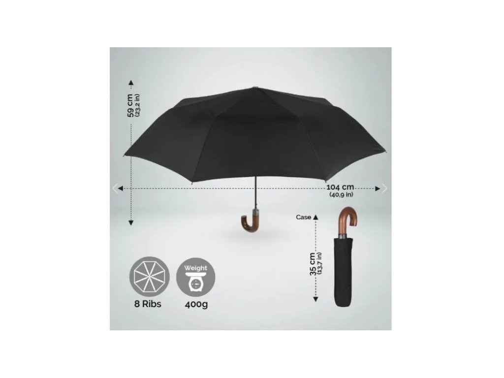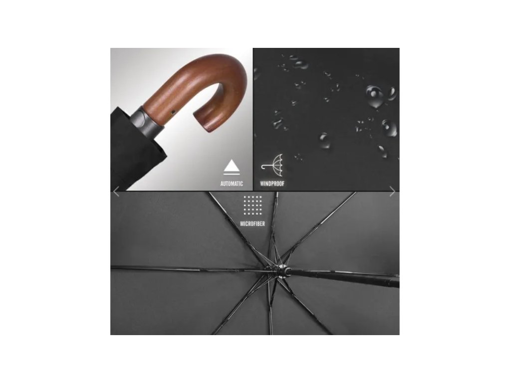 Dáždnik je vybavený luxusnou rukoväťou z pravého dreva, čo dodáva jeho vzhľadu eleganciu a luxus. Vďaka svojej kompaktnosti a váhe 376g je ideálny na každodenné používanie, rovnako ako na cestovanie alebo ako originálny darček pre každú príležitosť.
