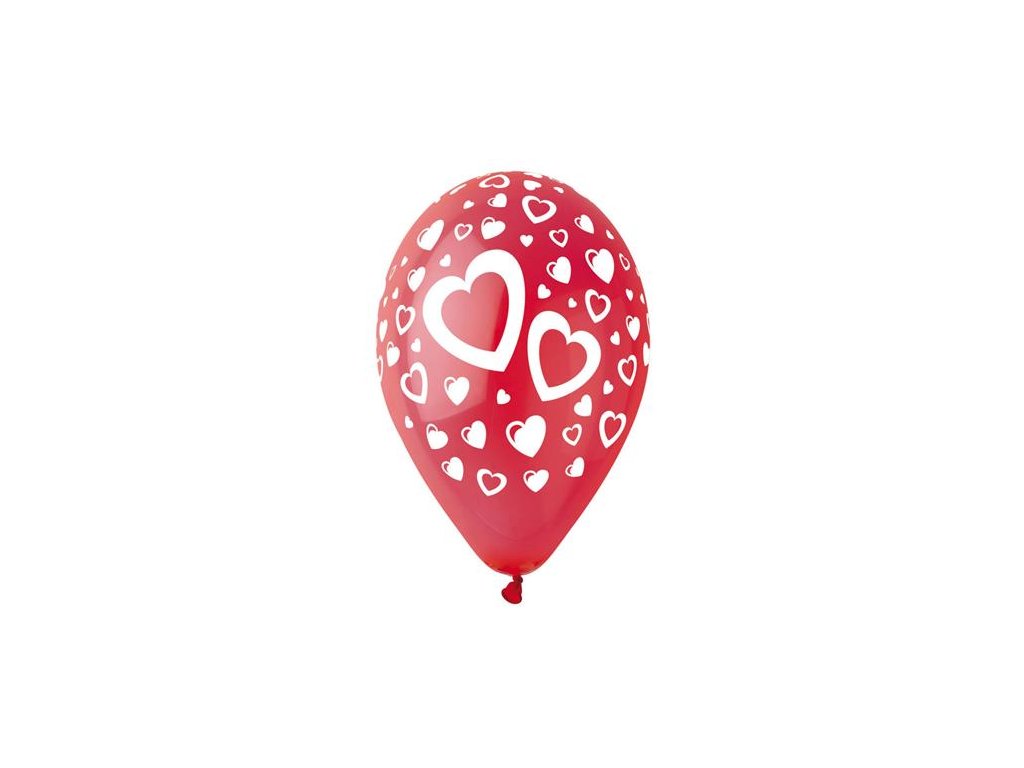 Balón, 30 cm, červený, srdiečka