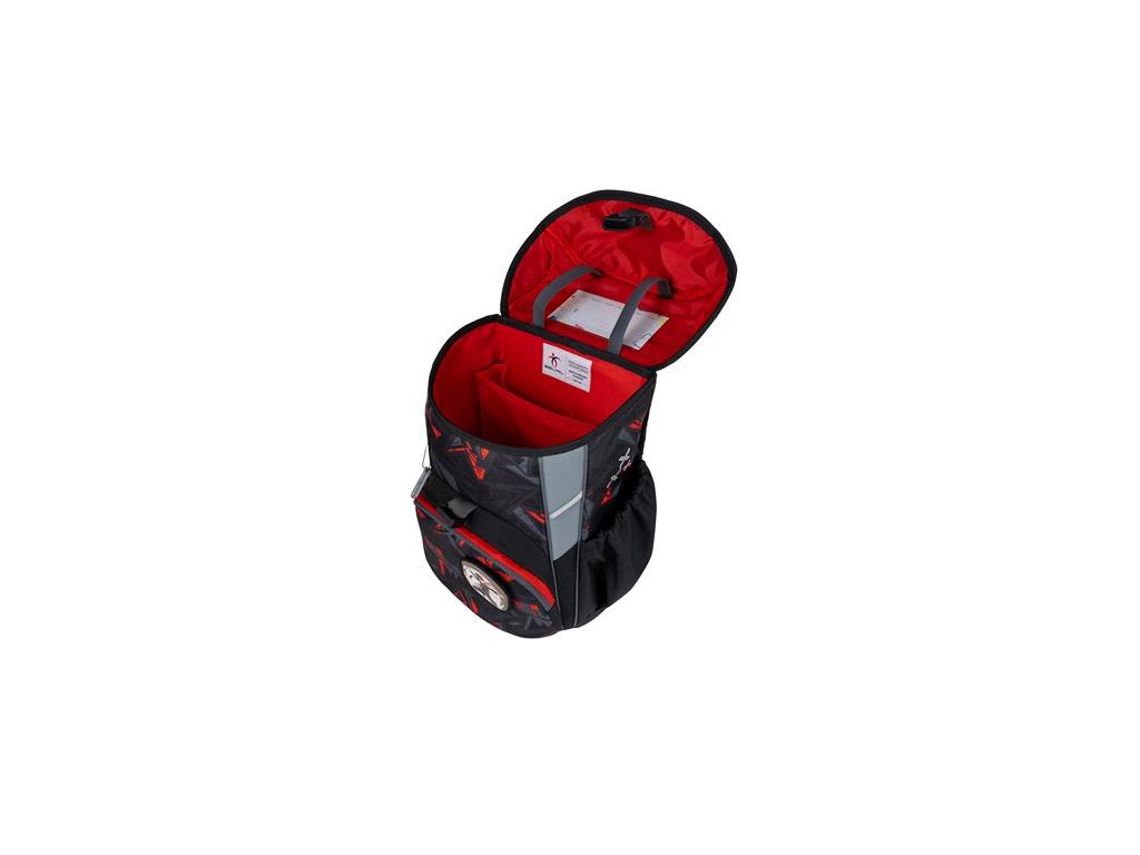2 vnútorné priehradky (vhodné pre knihy formátu A4) + 2 bočné vrecká (na dáždnik a fľašu s objemom 0,7 litra) + 1 priehradka na desiatu