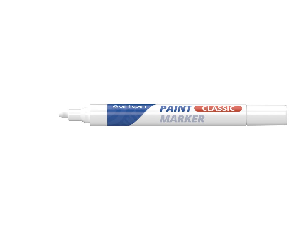 Lakový popisovač Centropen s prepúšťajúcim mechanizmom píše na nepórovité povrchy po zaschnutí odolá vode, oteru, poveternostným vplyvom a je svetlostály. Plastový hrot v kovovej objímke, šírka stopy 1-5 mm, neobsahuje toluén a xylén.