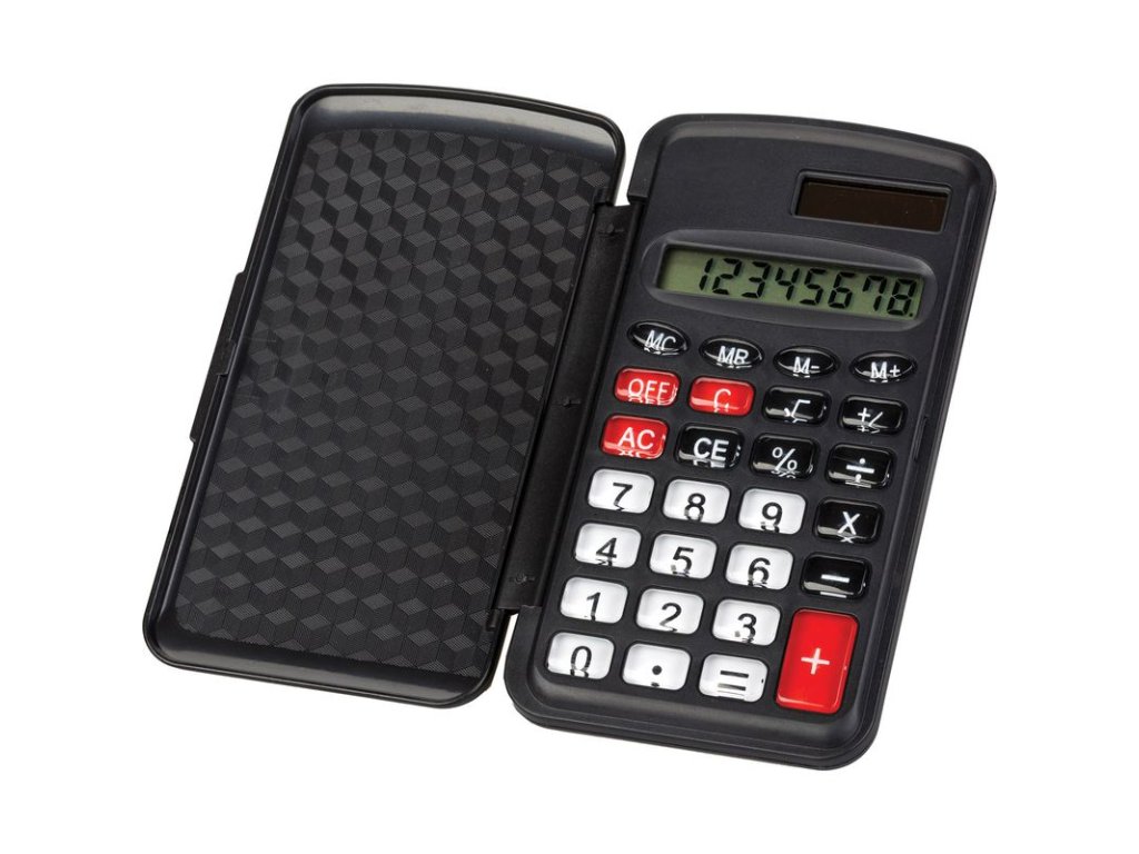 Vrecková kalkulačka s mäkkým plastovým puzdrom a 8 miestnym displejom.