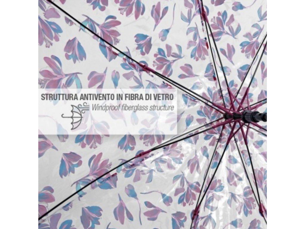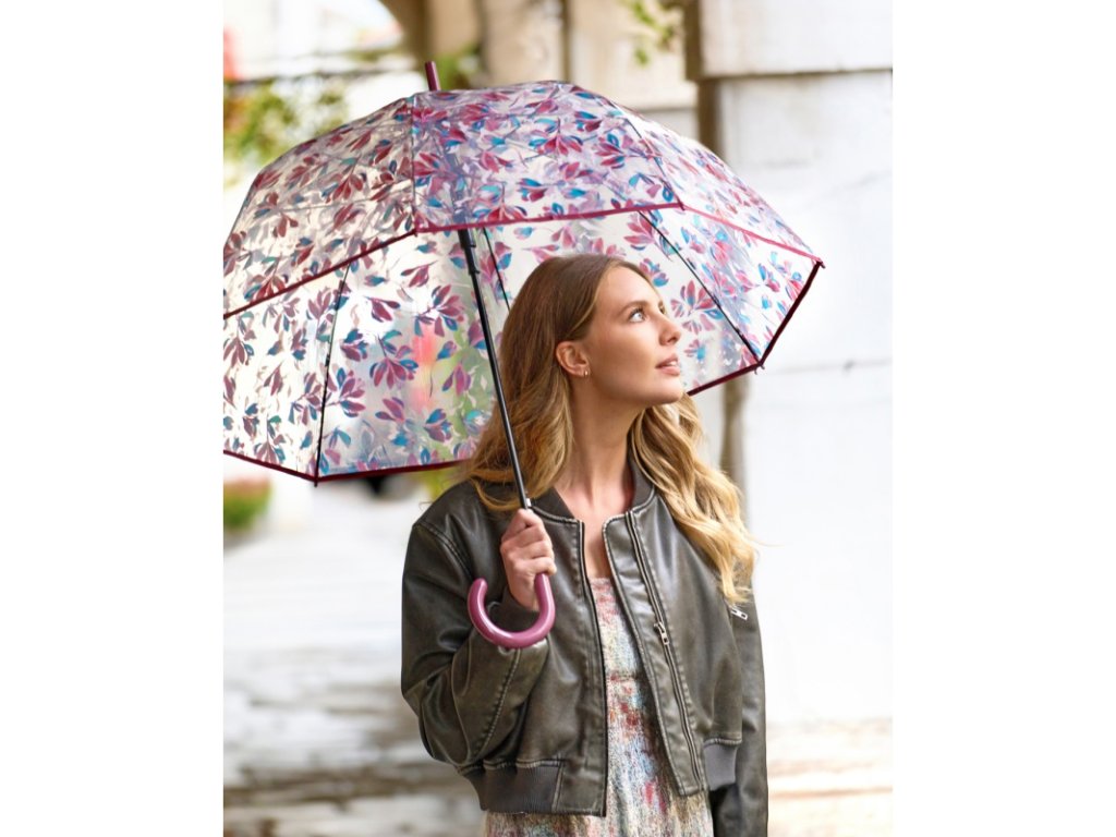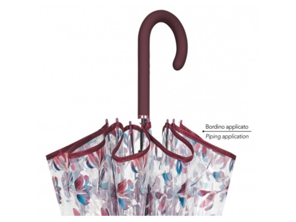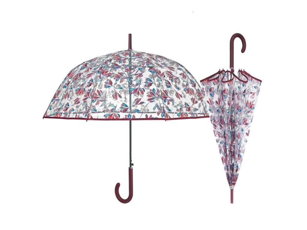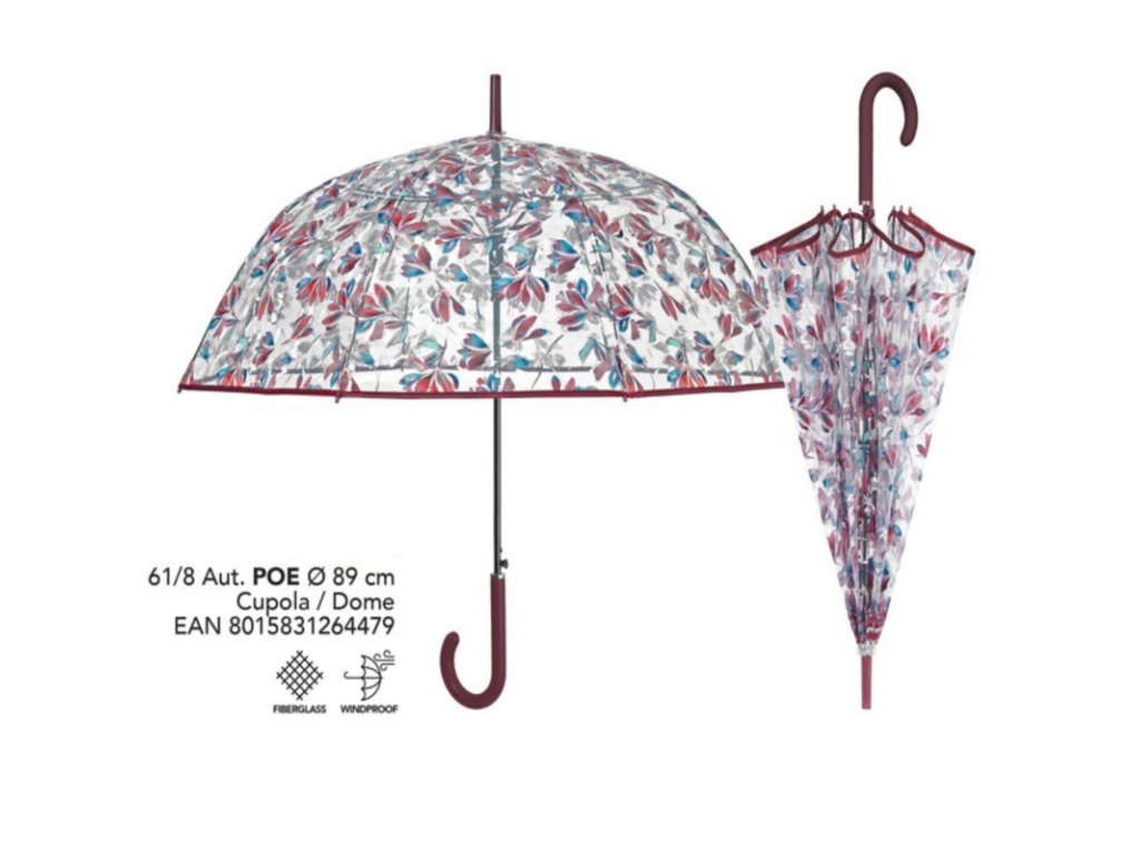 Vďaka transparentnému POE materiálu umožňuje dáždnik neustály výhľad na okolie, čo je praktické najmä v rušnom meste. Dizajnové lístky dodávajú dáždniku jemnosť a ženský šarm, vďaka čomu sa stane skutočným štýlovým prvkom.