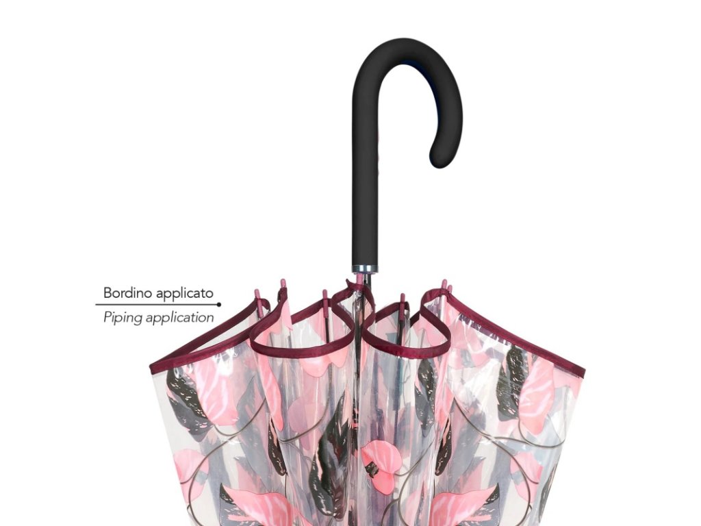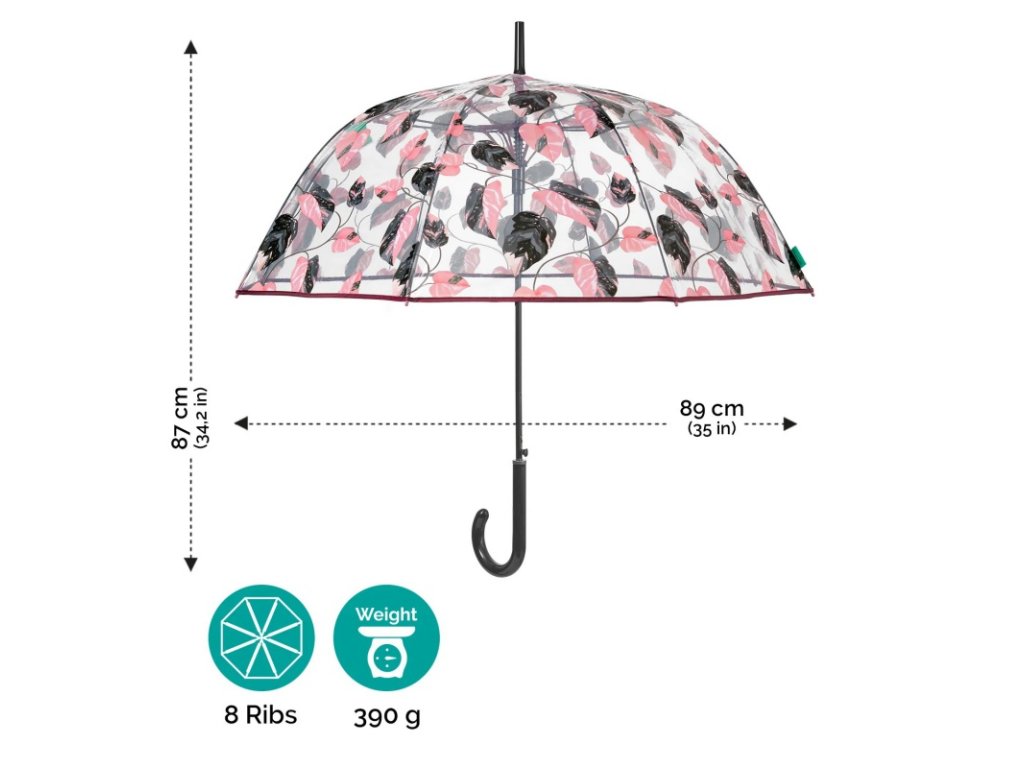 Predstavujeme vám dokonalý doplnok pre daždivé dni - dámsky priehľadný dáždnik Perletti s očarujúcim motívom listov. Tento dáždnik je navrhnutý tak, aby vám poskytol nielen spoľahlivú ochranu pred nepriazňou počasia, ale aj štýlový a moderný vzhľad.Dáždnik Perletti je vyrobený z vysoko kvalitných materiálov, ktoré zaručujú jeho odolnosť a dlhú životnosť. Konštrukcia z skleneného vlákna poskytuje dáždniku vynikajúcu pevnosť a odolnosť voči silným poryvom vetra. Vďaka tomu sa môžete spoľahnúť, že váš dáždnik vydrží aj v tých najnáročnejších poveternostných podmienkach.