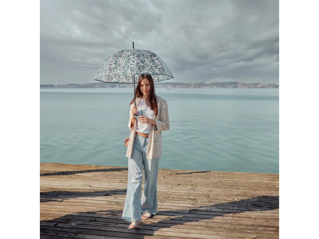 Zahaľte sa do jemnosti a sviežosti prírody aj počas daždivých dní. 🌿 Dámsky priehľadný dáždnik Perletti Time s elegantnou potlačou zelených listov je dokonalým doplnkom pre moderné ženy, ktoré hľadajú krásu aj v praktických veciach.
