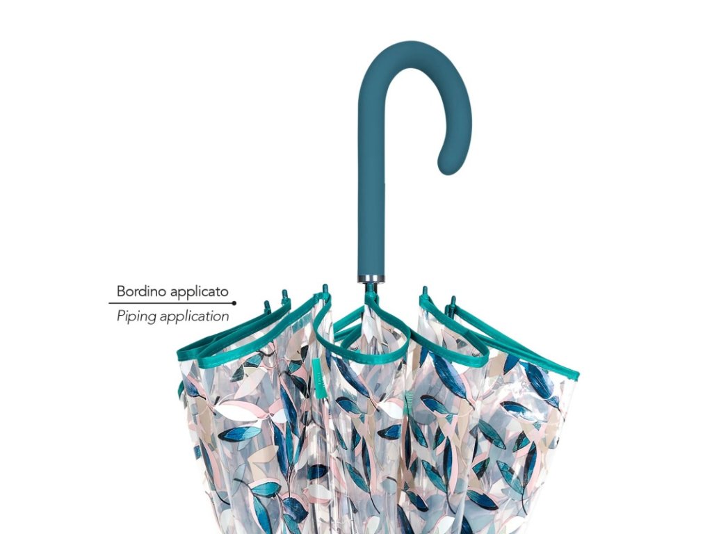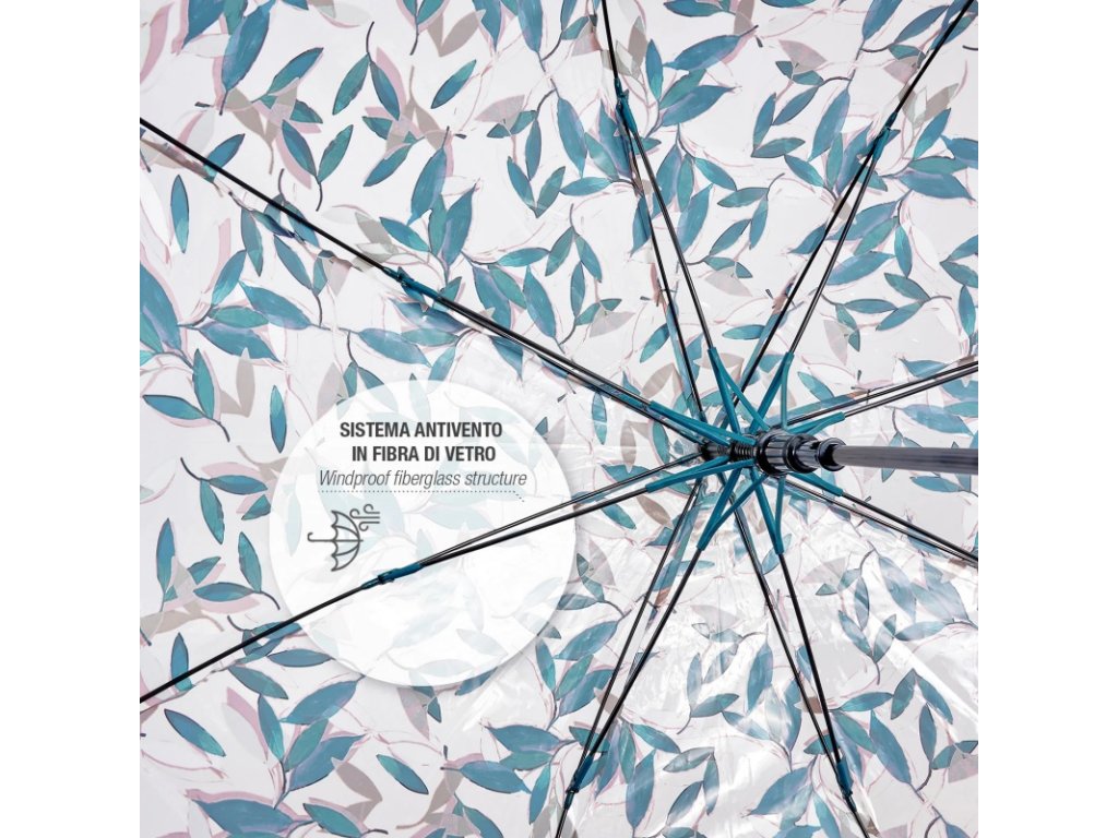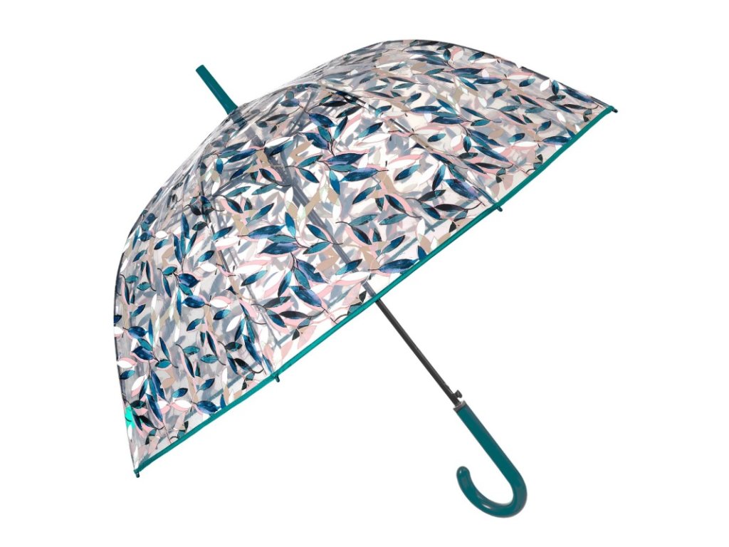 Dámsky priehľadný dáždnik s motívom zelených listov Perletti Time, 26388