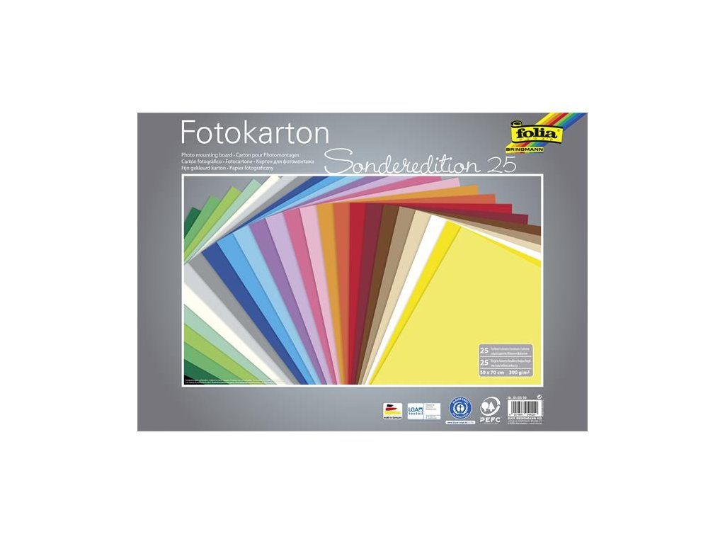 Dekoračný kartón, 2 stranný, 50x70 cm, 300 g, 25 listov, FOLIA, rôzne farby