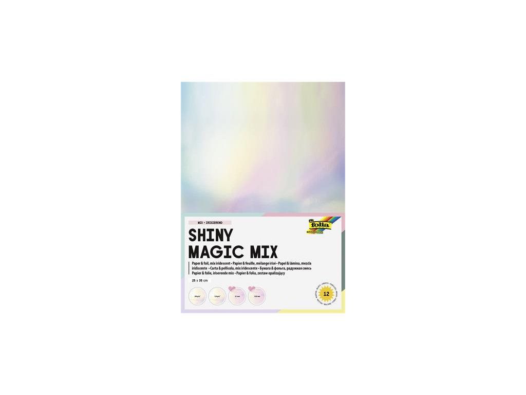 Dekoračný kartón s fóliou, sada, irizujúci, 25x35 cm, 6+6 listov, FOLIA