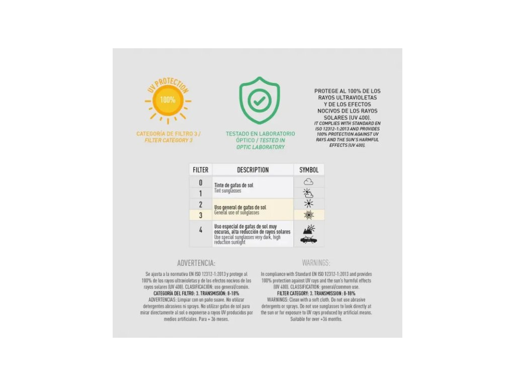 • moderný typ rámu• total UV ochrana 400, filter kategória 3, transmission 8-18%