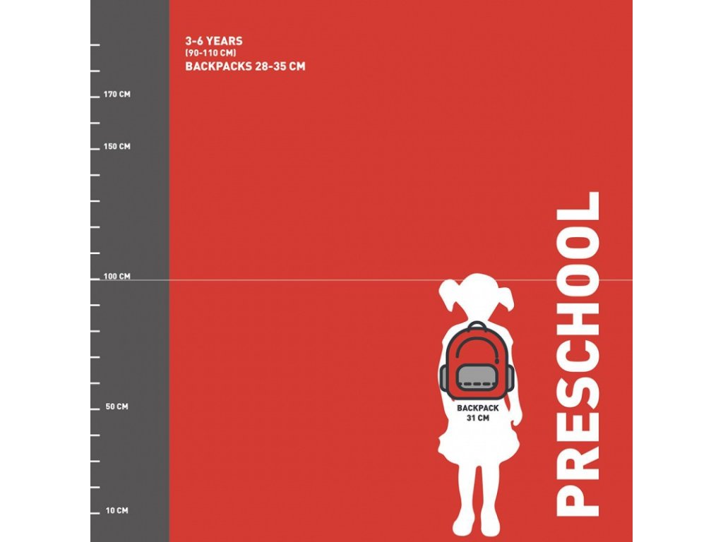 Batoh má kompaktné rozmery približne 25 × 33 × 10 cm a je navrhnutý špeciálne pre menšie deti. Poskytuje dostatok priestoru na uloženie drobností, hračiek či desiaty, pričom zostáva ľahký a pohodlný na nosenie 🎒