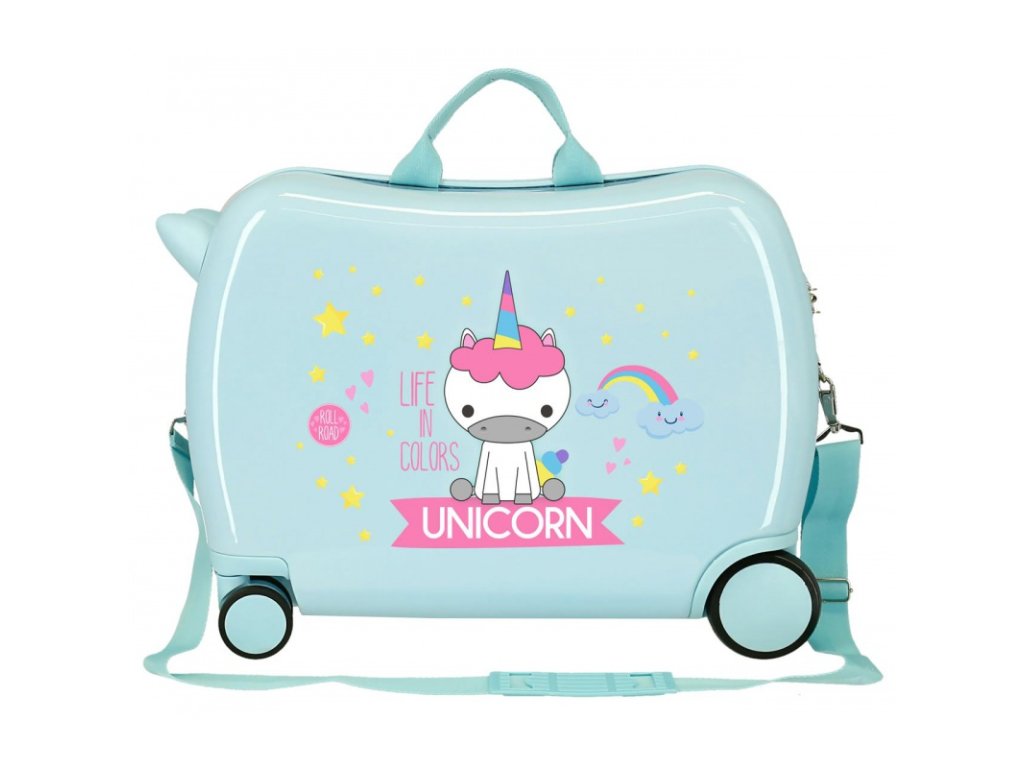 Detský cestovný kufor na kolieskach / odrážadlo LITTLE ME UNICORN s magickým motívom jednorožca je ideálny pre malých cestovateľov. Tento kufor z pevného ABS plastu je nielen praktickým doplnkom na cestovanie, ale aj zábavným odrážadlom. Predné otočné kolieska o 360° umožňujú ľahkú manipuláciu, a odnímateľný popruh uľahčuje jeho prenášanie alebo ťahanie. Kufor je vybavený integrovaným číselným zámkom pre bezpečnosť a maximálnou záťažou 30 kg, čo ho robí ideálnym aj pre menšie deti. S vnútorným objemom 34L a rozmermi 50 x 20 x 38 cm je vhodný aj ako palubná batožina.