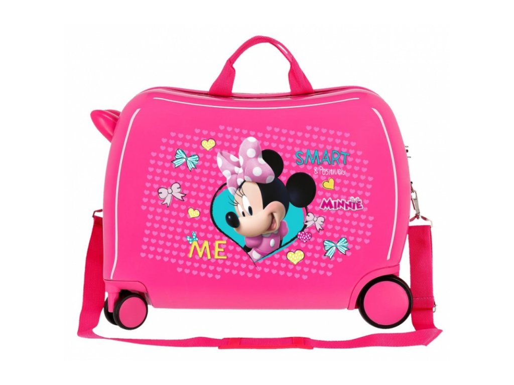Detský cestovný kufor MINNIE MOUSE Happy Helpers kombinuje praktickosť s zábavou! Tento farebný kufor sa dá ľahko premeniť na odrážadlo, takže vaše deti môžu počas cestovania jazdiť na svojom obľúbenom motíve. Vyrobený z pevného ABS plastu, je odolný voči nárazom a ponúka maximálnu ochranu pre všetky cennosti vašich detí.
