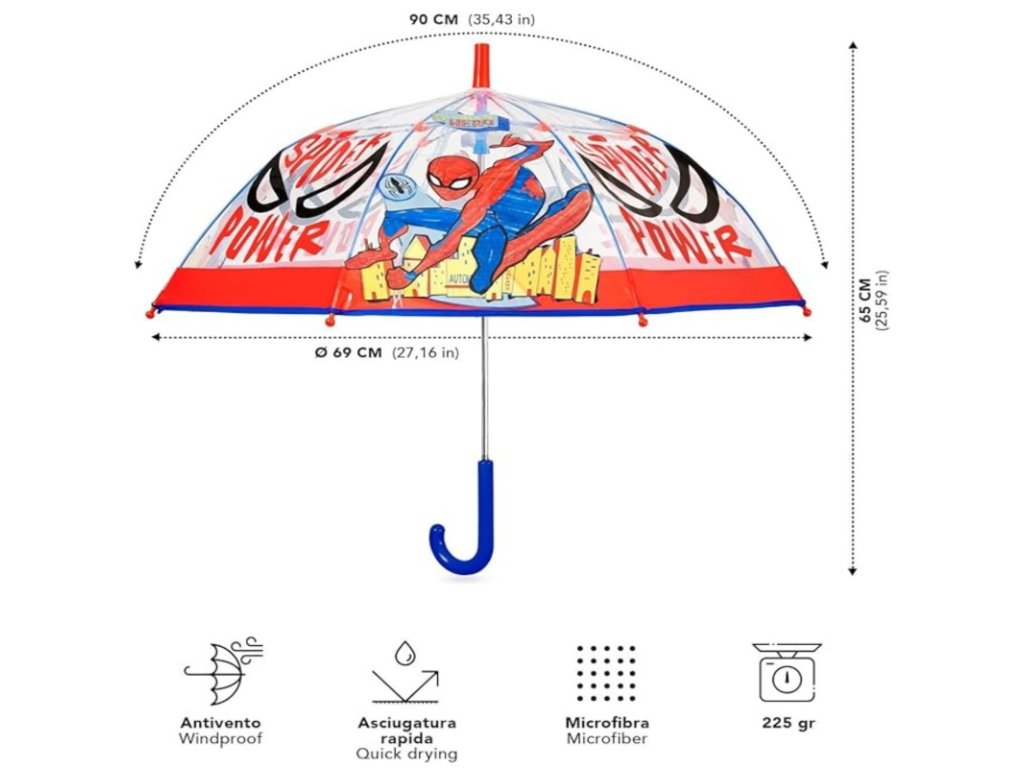 Perletti Kids prináša veselý priehľadný dáždnik s výrazným motívom Spider Power a obľúbenou postavou Spidermana. Ideálny pre malých superhrdinov, ktorí sa neboja dažďa!