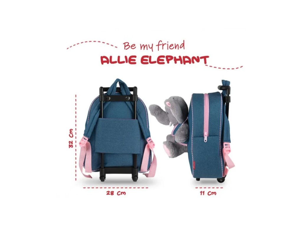 Plyšová hračka v podobe sloníka je zasunutá do roztomilých nohavičiek na suchý zips, takže ju môžete ľahko vybrať a používať aj samostatne. Tento batoh je ideálny na výlety, do škôlky alebo na dovolenky, kde sa stane verným parťákom na každom kroku.