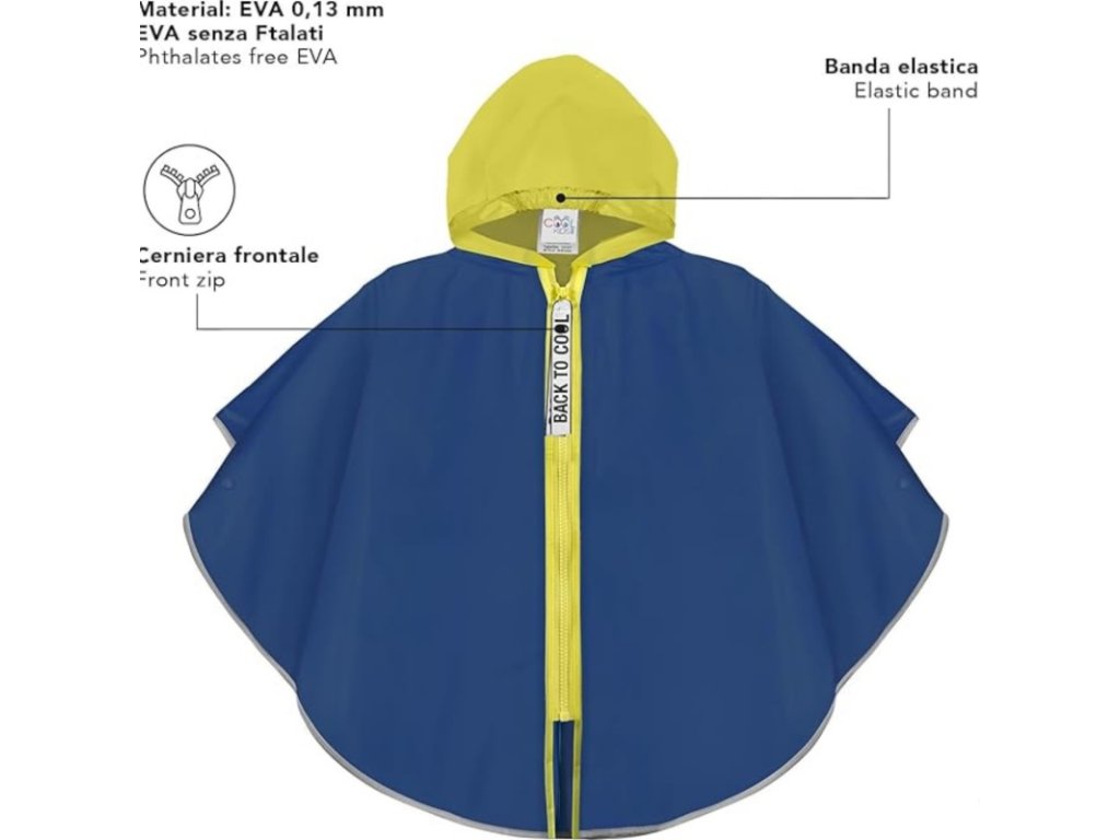 Detský pršiplášť Perletti Cool Kids „Back to Cool“ 🌧️🧒 prináša do daždivých dní štýl a bezpečie. Jednofarebný modrý EVA materiál je úplne vodeodolný a bez toxických látok, zatiaľ čo žlté lemovanie kapucne a reflexné detaily 🚨 zvyšujú viditeľnosť aj na tmavých uliciach. Predné zapínanie na zips umožňuje deťom samostatne sa obliecť bez pomoci a ľahká konštrukcia ponča (cca 200 g) neobmedzuje v pohybe. Kapucňa s miernym štítkom chráni tvár pred kvapkami a univerzálna veľkosť sedí deťom od 3 do 6 rokov 🎂. Nech už malí dobrodruhovia putujú do škôlky, na výlet či do parku, pončo „Back to Cool“ ich ochráni a zároveň im dodá sebavedomie! 💧