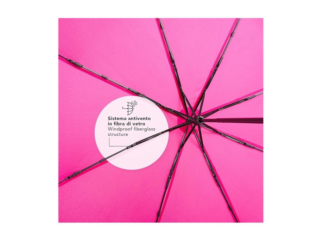 Rám vyrobený z uhlíkových vlákien (fiberglass) poskytuje maximálnu odolnosť proti nárazom vetra a predlžuje životnosť dáždnika.