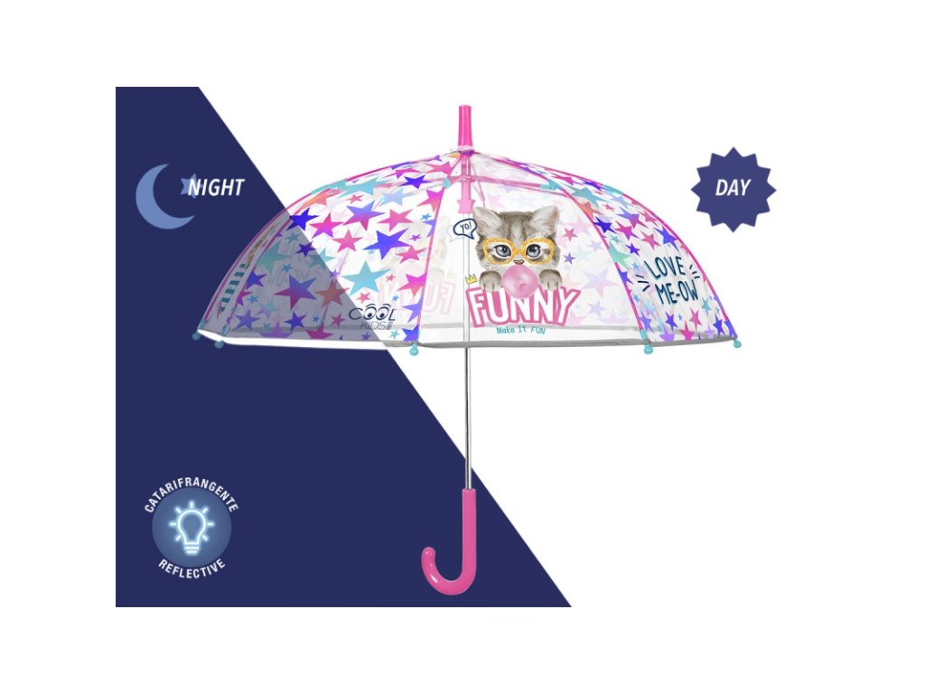 Detský reflexný transparentný dáždnik Perletti Cool Kids "Funny Cat", 15655