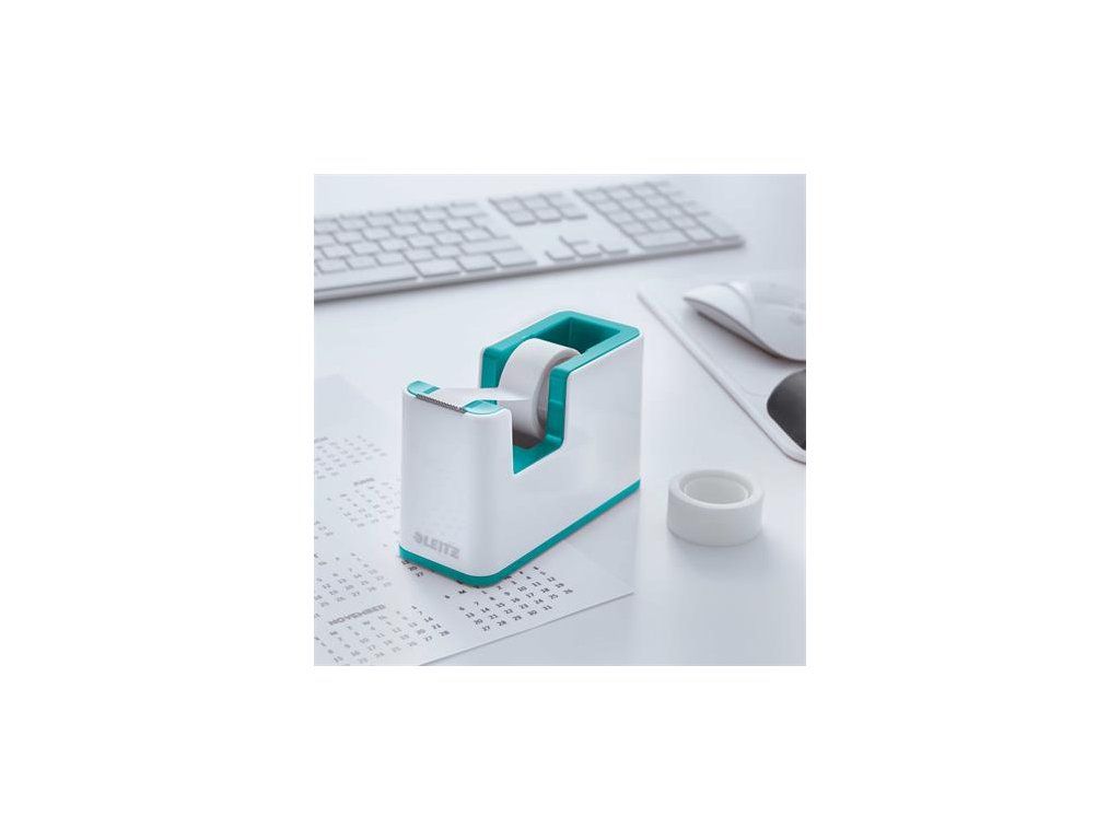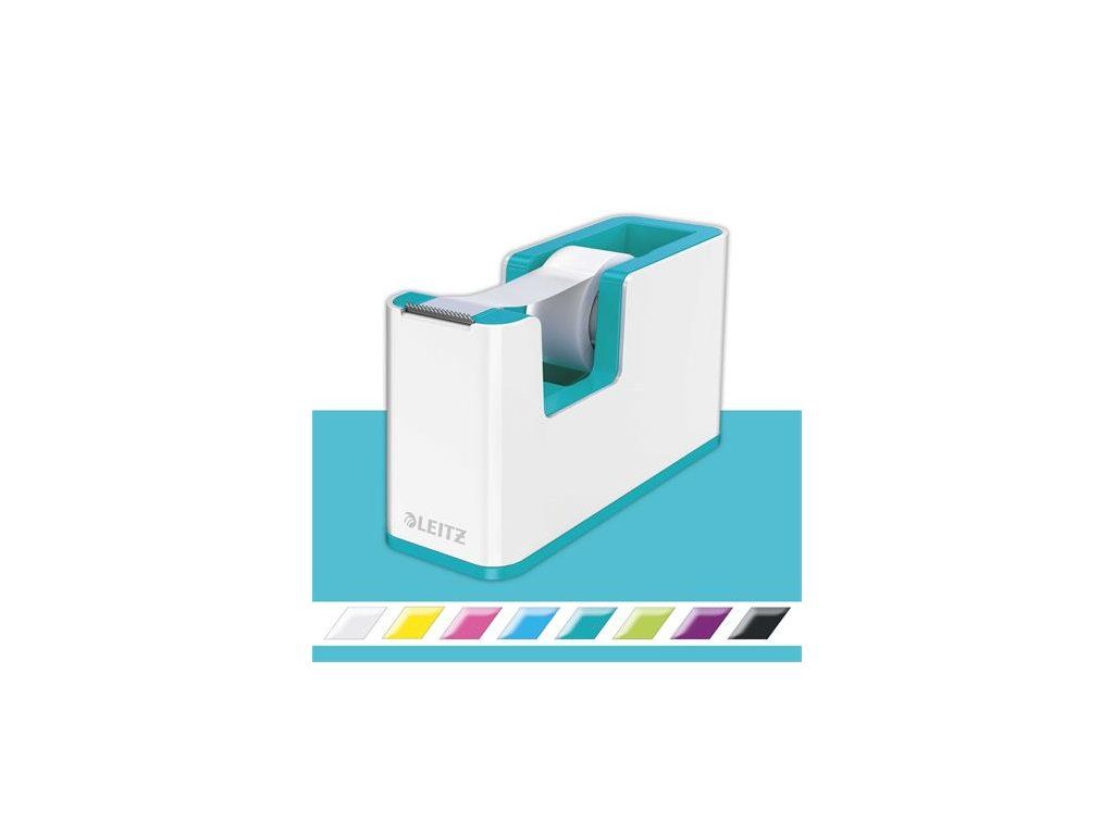 Dispenzor na lepiacu pásku, stolový, naplnený, LEITZ "Wow", biela-ľadovo modrá