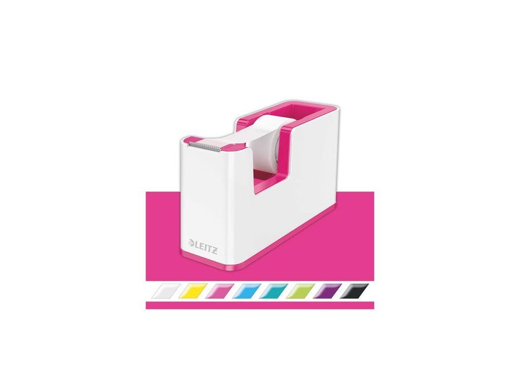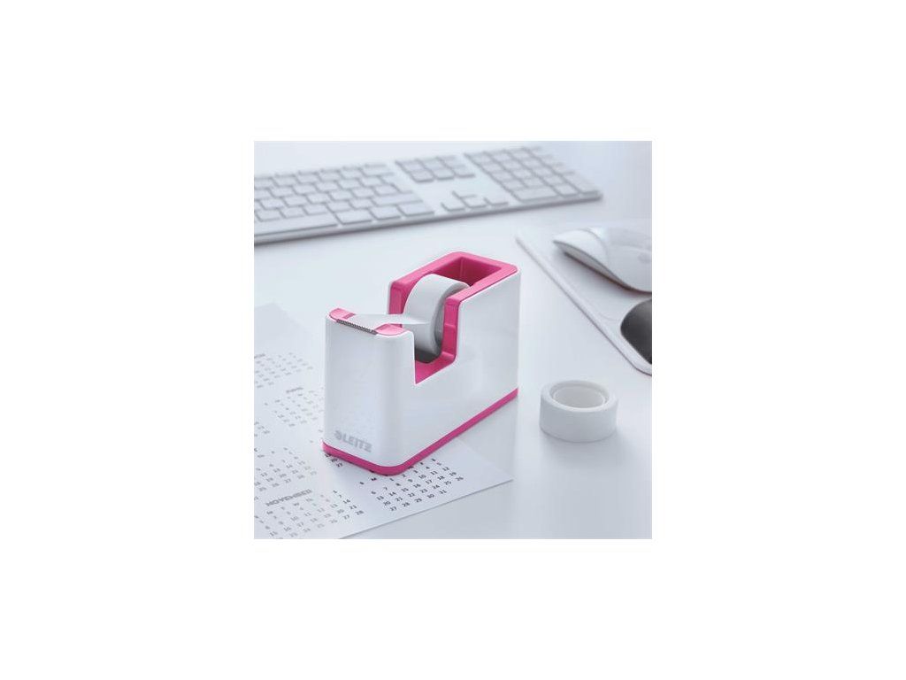 Dispenzor na lepiacu pásku, stolový, naplnený, LEITZ "Wow", bielo-ružová