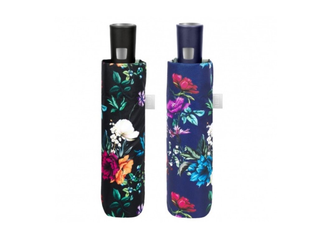 Elegantný skladací dámsky dáždnik Perletti Time "Fiori", modrý, 26433