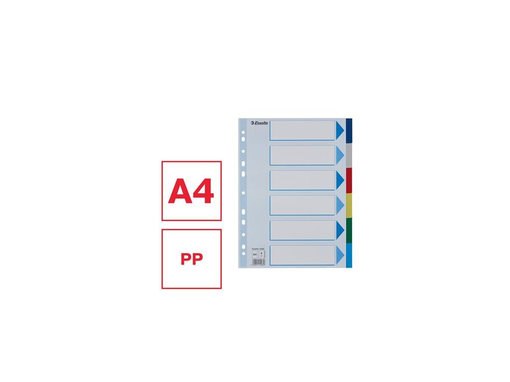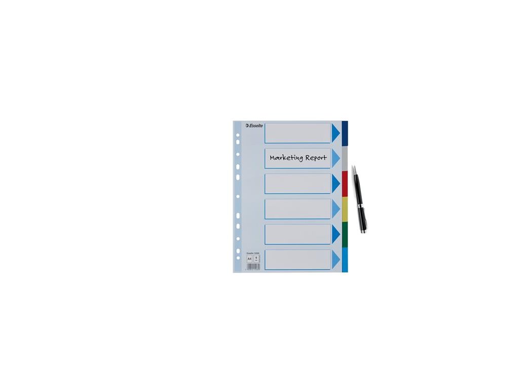 Plastové rozlišovače pre farebné triedenie dokumentov v zoraďovačoch či doskách do formátu A4 s titulnou popisovateľnou stranou. Jednotlivé stránky v rôznych farbách.