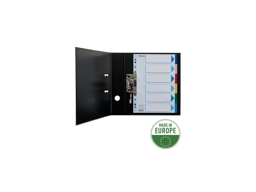 Plastové rozlišovače pre farebné triedenie dokumentov v zoraďovačoch či doskách do formátu A4 s titulnou popisovateľnou stranou.