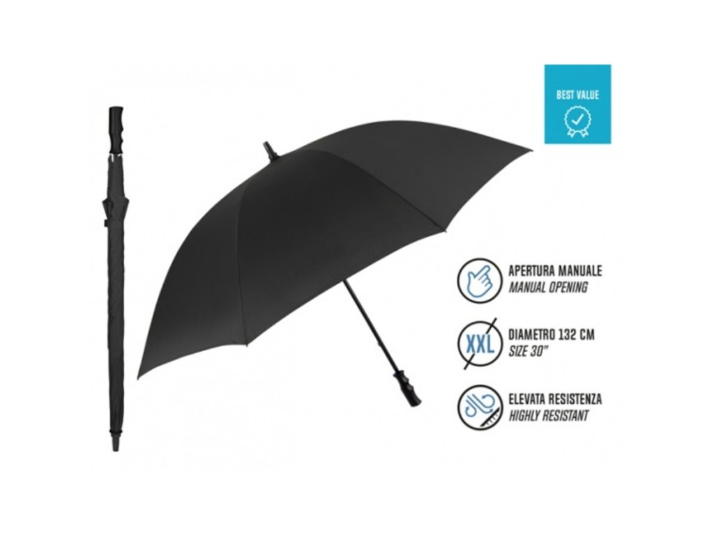 Golfový dáždnik Perletti Promozionali Black, manuálny, 96020-01