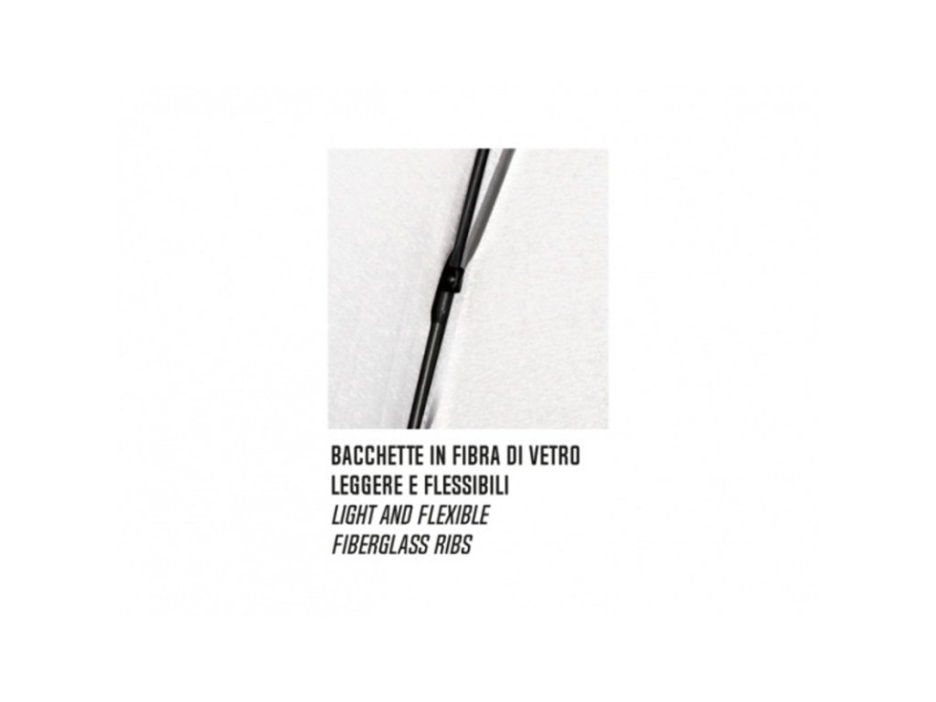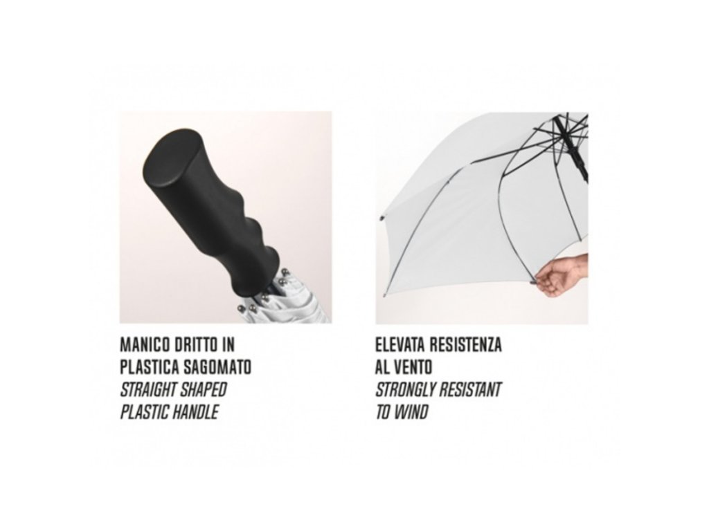 Dáždnik je vybavený sklolaminátovými rebrami, ktoré zaisťujú flexibilitu a odolnosť voči vetru. Tvarovaná plastová rukoväť dobre padne do ruky, pričom konštrukcia je ľahká, ale pevná. Vďaka svojej veľkosti a vysokej odolnosti je vhodný aj pre dve osoby.