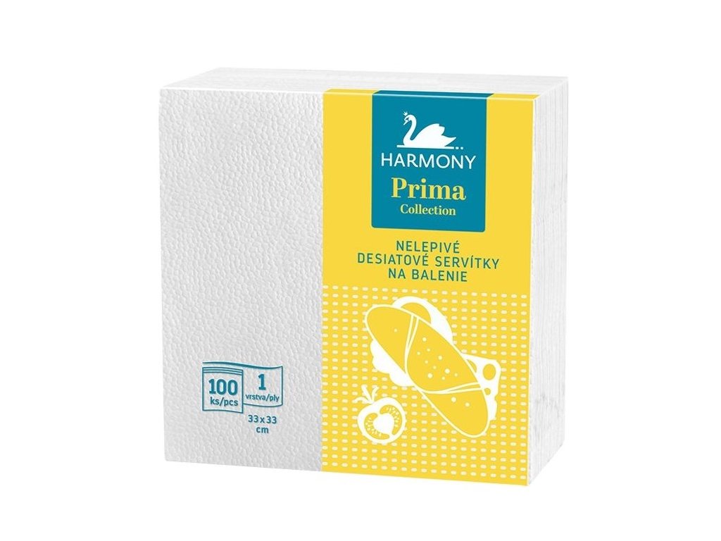 Harmony Prima servítky desiatové 1 vr. biele 33x33 cm 100 ks balenie