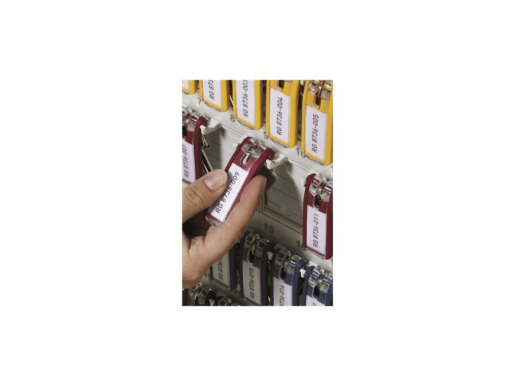 Tento jedinečný plastový prívesok na kľúče umožňuje dokonalý prehľad o kľúčoch v skrinke vďaka tomu, že kľúče sú na plocho uložené za kľúčenkou a popisovacie štítky sú tak kedykoľvek čitateľné. Kľúčenka je speciálne designovaná, aby bola zavesená na háčikoch a špeciálnych koľajniciach, jedine táto kombinácia zabezpečí, že kľúčenka visí nehybne na svojom mieste. Pre vloženie popisovacieho štítku možno klip ľahko otvoriť bez nutnosti zbavenia sa závesného krúžku. Na uľahčenie popisu slúži bezplatný softvér na www.durable.de. KEY CLIP - Kľúčenka je v ponuke v štyroch atraktívnych farbách (žltá, červená, modrá a čierna) - farbu nie je možné vybrať.Dodatočné parametre