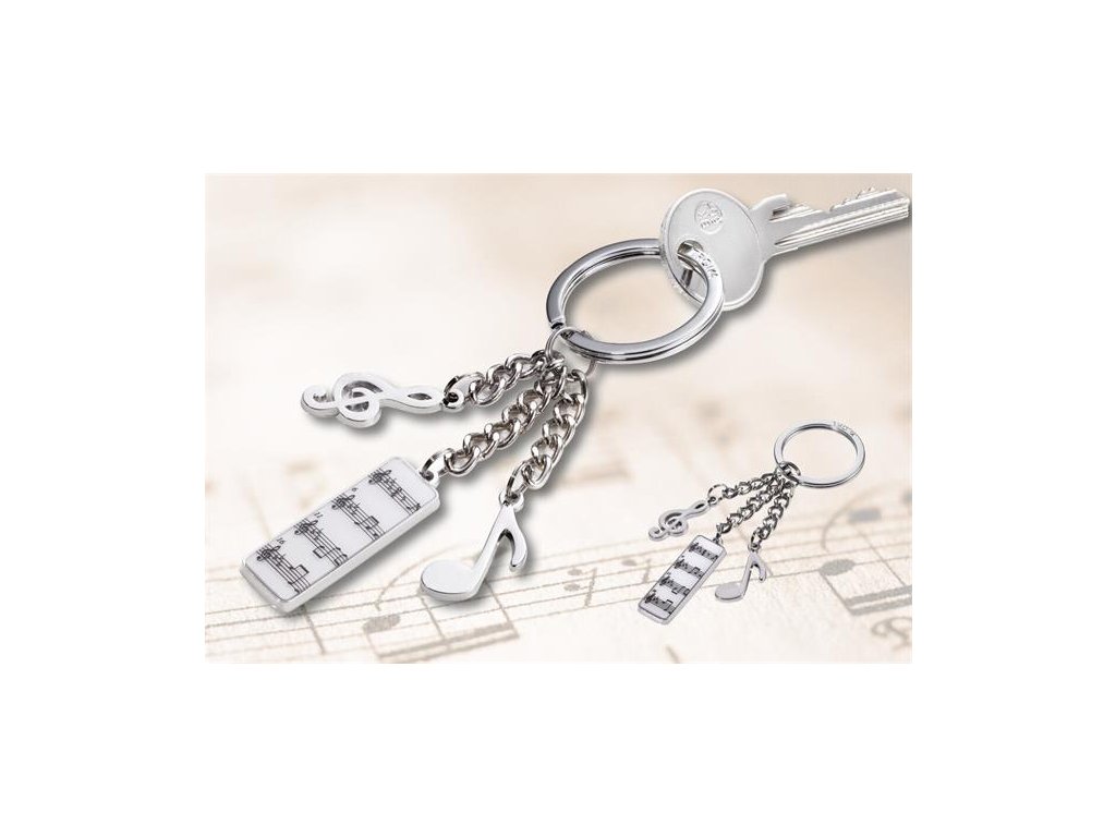 Tento prívesok na kľúče je stvorený pre milovníkov hudby a obsahuje tri dekoratívne prívesky. -3 ozdobné prívesky -notová osnova, nota, husľový kľúč -farba: striebornáZnačka: TROIKA