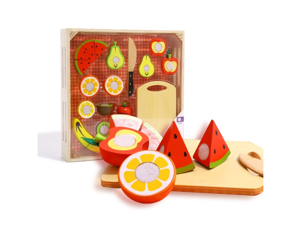 Krájanie Ovocie v debničke Pripravíme zdravé jedlo! Drevené potraviny na suchý zips vhodné pre každého malého kuchára. Súčasťou je nožík na na krájanie. Deti si pri hre cvičia jemnú motoriku Učia sa tiež hrať sa samostatne, rozvíjajú si slovnú zásobu, získavajú sebavedomie, získavajú kladný vzťah k jedlu a varenie.Dodatočné parametre