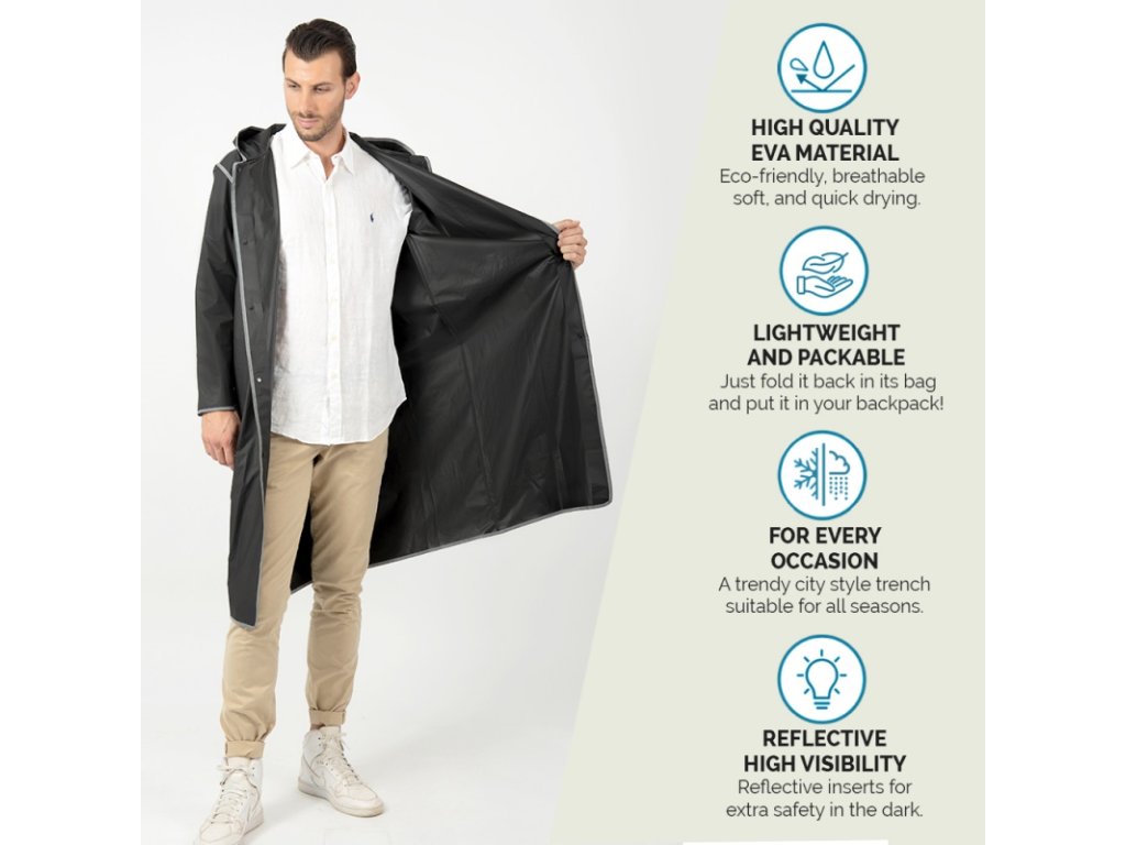 Kvalitný pánsky pršiplášť Perletti Nero/Grey, veľ.L, 14225