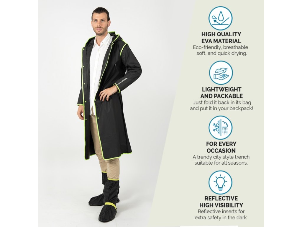 Kvalitný pánsky pršiplášť Perletti Nero/Lime, veľkosť S, 14221