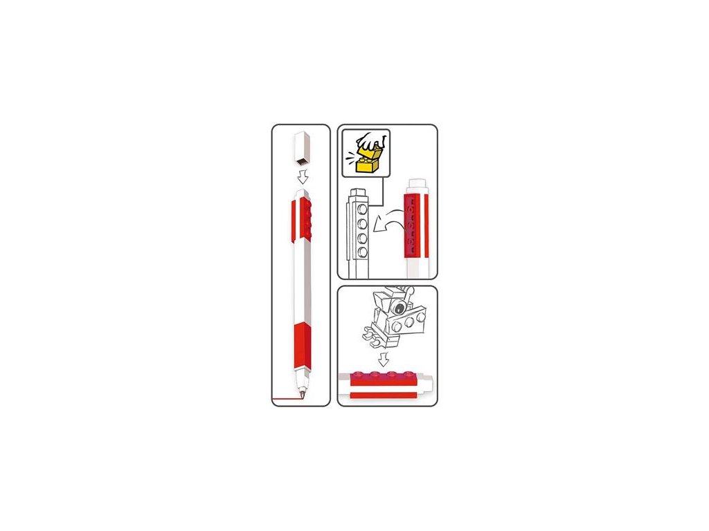 Gélové pero s hrúbkou písma 0,7 mm s uzáverom a štvorhranným telom pera s LEGO mini figúrkou. Na konci pera je umiestnené LEGO, vďaka čomu je možné ho spojiť s iným LEGO zakončením, ozdobou, písacou potrebou alebo hračkou. Farba atramentu sa zhoduje s farbou tela pera.