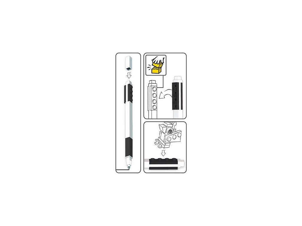 Gélové pero s hrúbkou písma 0,7 mm s uzáverom a štvorhranným telom pera s LEGO mini figúrkou. Na konci pera je umiestnené LEGO, vďaka čomu je možné ho spojiť s iným LEGO zakončením, ozdobou, písacou potrebou alebo hračkou. Farba atramentu sa zhoduje s farbou tela pera.