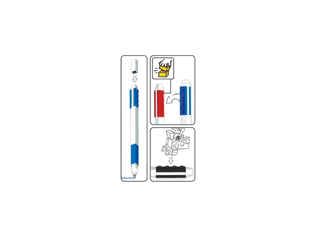 Gélové pero s hrúbkou písma 0,7 mm s uzáverom a štvorhranným telom pera s LEGO mini figúrkou. Na konci pera je umiestnené LEGO, vďaka čomu je možné ho spojiť s iným LEGO zakončením, ozdobou, písacou potrebou alebo hračkou. Farba atramentu sa zhoduje s farbou tela pera.