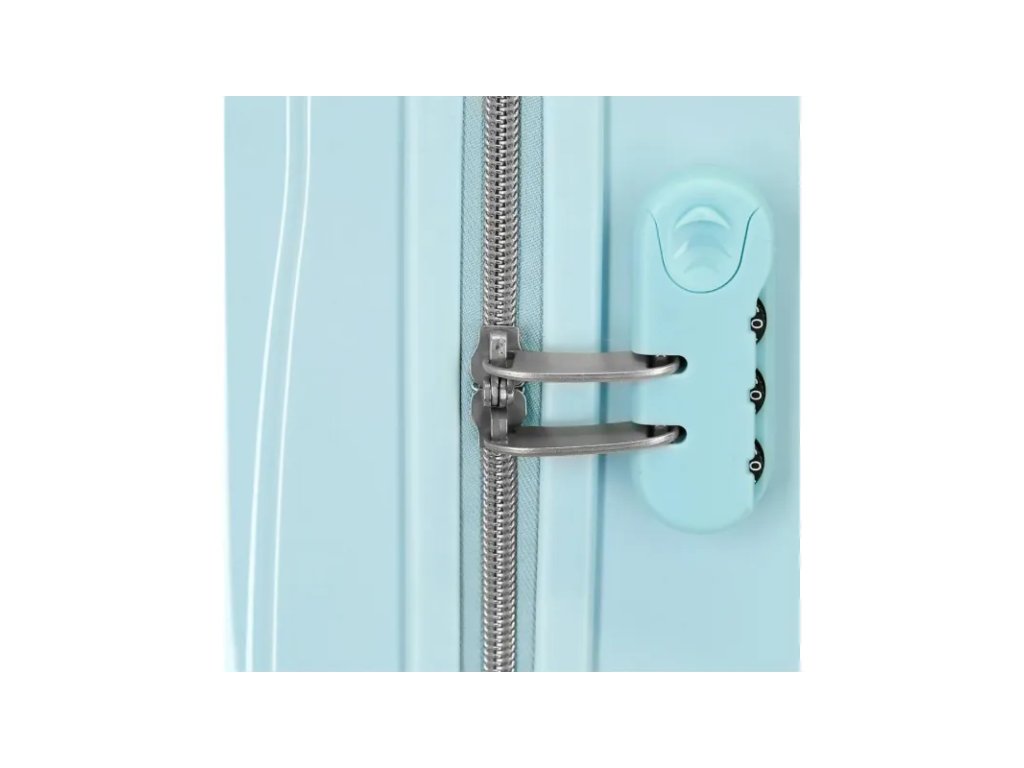 Kufor je vybavený štyrmi otočnými kolieskami, ktoré zabezpečujú hladký pohyb v každom smere, a teleskopickým výsuvným systémom pre pohodlnú manipuláciu. Bezpečnosť batožiny je zaistená integrovaným číselným zámkom. Dizajn s motívom Frozen Frosted Light zaujme každého malého fanúšika týchto rozprávkových postavičiek.