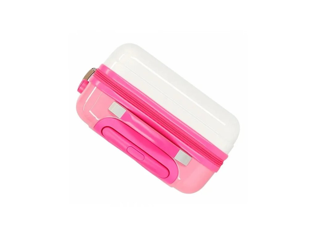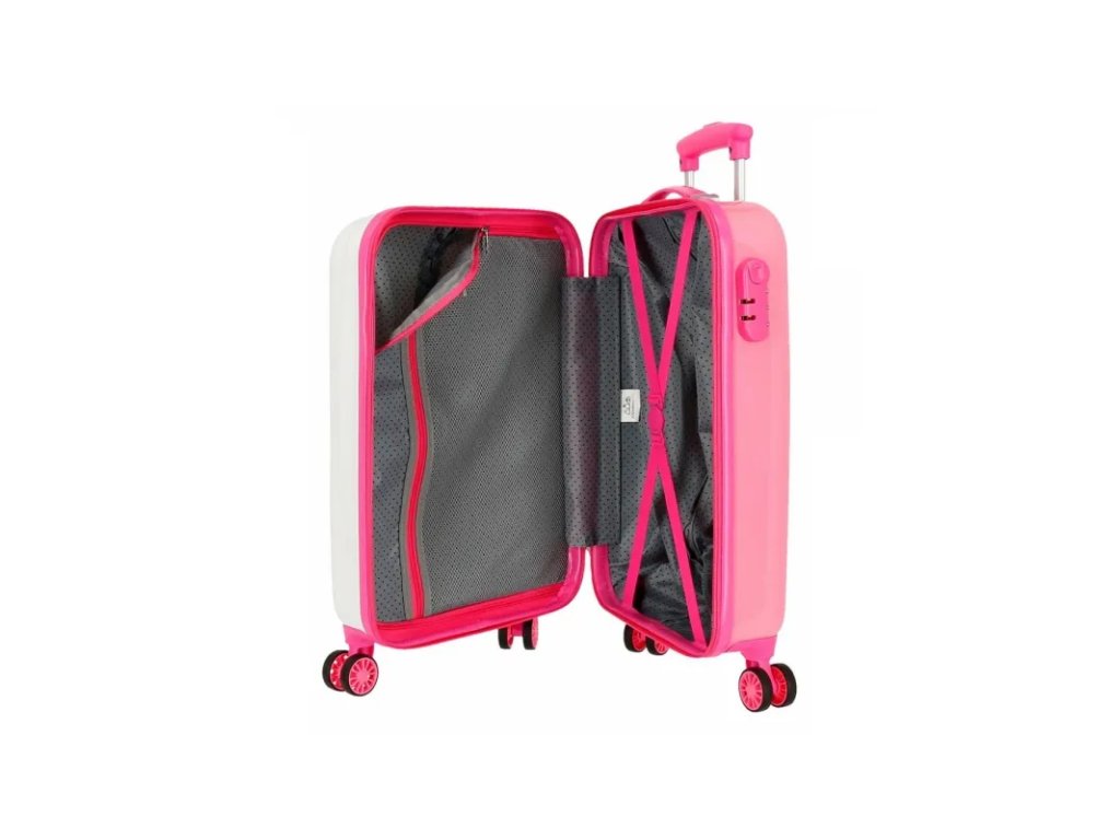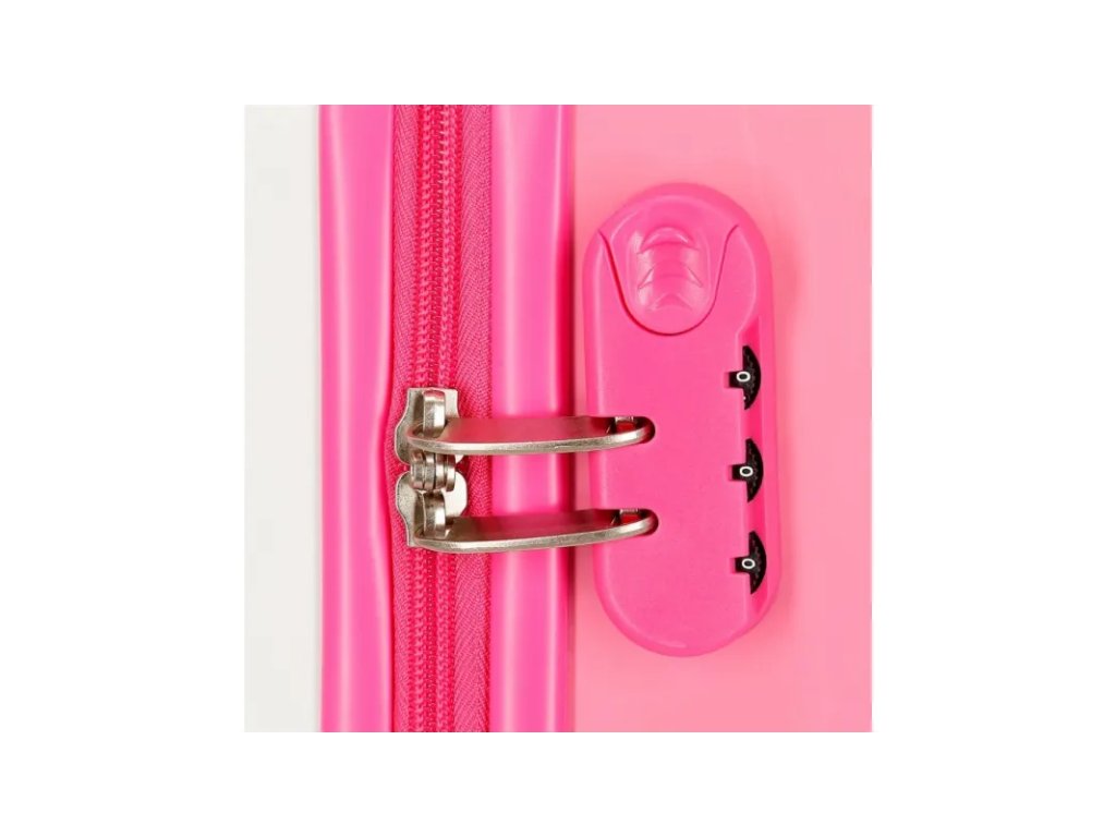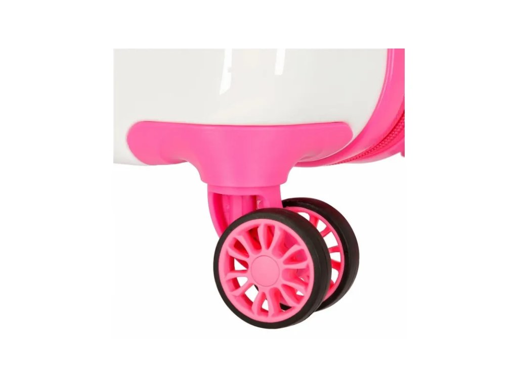 Luxusný detský cestovný kufor MINNIE MOUSE Good Mood je perfektný spoločník pre každú malú cestovateľku. Tento škrupinový kufor je vyrobený z kvalitného ABS plastu, ktorý zabezpečuje odolnosť a dlhú životnosť. Kufor má objem 32L a je vybavený štyrmi otočnými kolieskami o 360°, čo umožňuje pohodlnú manipuláciu v každom smere. S integrovaným číselným zámkom a teleskopickým výsuvným systémom je kufor praktický a bezpečný. Vnútorný priestor kufra je rozdelený pomocou textilnej podšívky a vrecka na zips, čo uľahčuje organizáciu vecí.