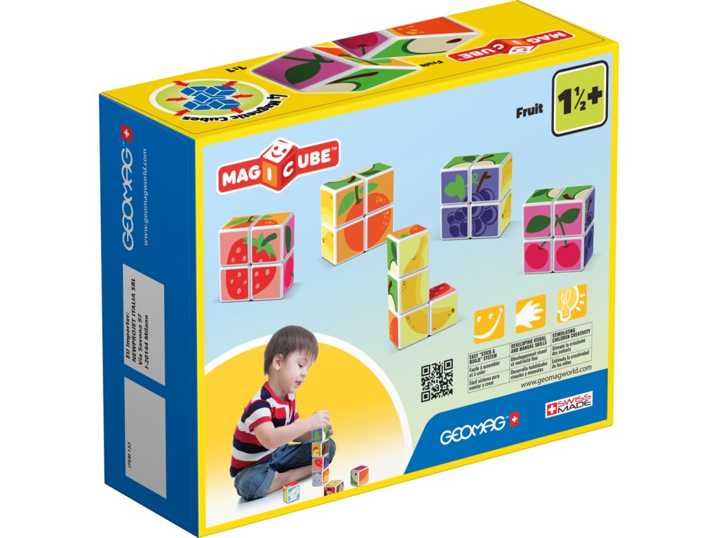 Magicube Fruit 4 dielyMagnetické kocky – Postav si svoje obľúbené ovocie! (od 18 mesiacov)Jablčko, banán alebo hrozno? Táto veselá sada magnetických kociek prinesie chutnú dávku zábavy aj učenia pre najmenších. Deti si môžu skladať ovocie, ktoré poznajú z taniera – a pritom si rozvíjajú jemnú motoriku, fantáziu a schopnosť rozoznávať farby a tvary.
