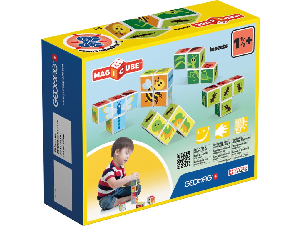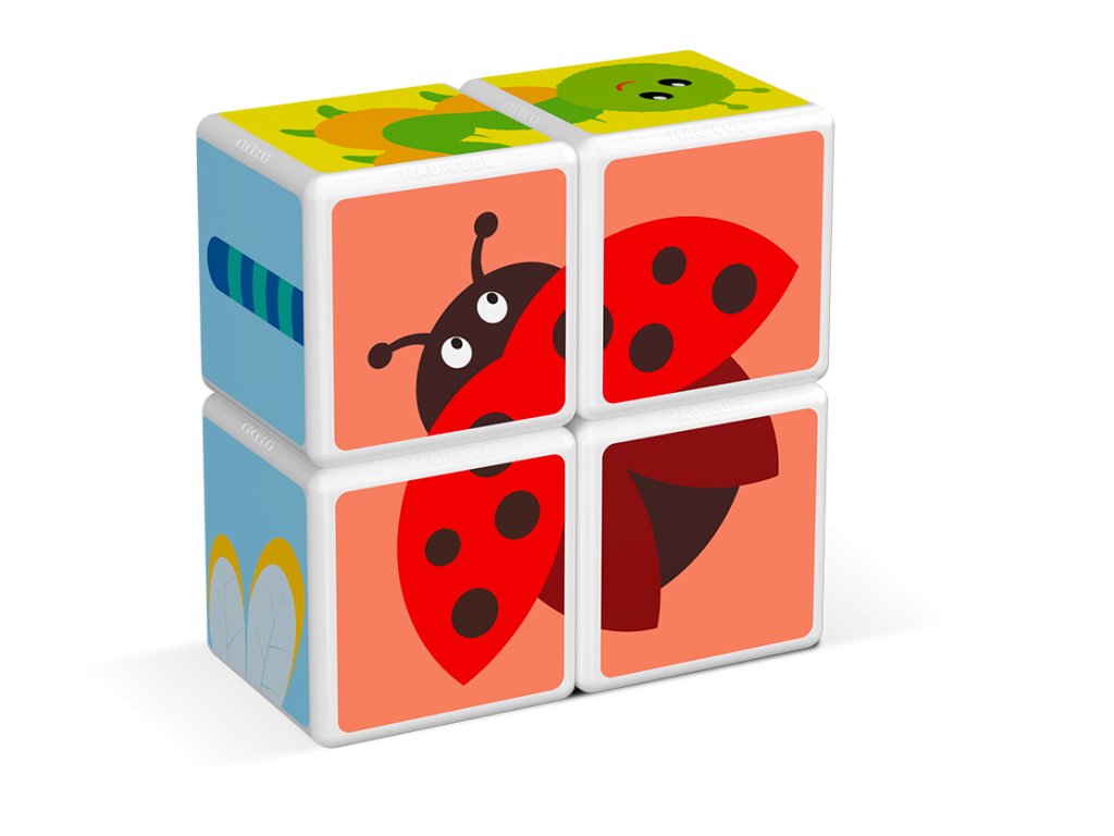 Magicube Insects 4 dielyMagnetické kocky – Objav svet hmyzu v 3D! (od 18 mesiacov)Lienka, vážka alebo mravec… a čo tak motýľ či húsenica? S touto farebnou magnetickou stavebnicou sa deti vydajú na objaviteľskú cestu do ríše hmyzu! Vďaka jednoduchému spájaniu a otáčaniu magnetických kociek si môžu postaviť vlastné 3D zvieratká.