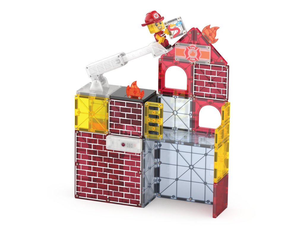 Magnetická stavebnica Fire Station 50 dielov Pripraviť hadice, rozsvietiť majáky a vyraziť do akcie! V meste vypukol požiar? Žiaden problém – Hasičská stanica MAGNA-TILES® je pripravená zasiahnuť! Táto interaktívna magnetická stavebnica ponúka realistický herný zážitok plný záchrany, odvahy a nápaditých príbehov, ktoré deti samy vytvárajú.Čo robí túto stavebnicu výnimočnou? Svetelno-zvukové dlaždice so sirénou – hrajú, blikajú, húkajú a znejú ako skutočná akcia.Mix & Match figúrka hasiča + magnetický dalmatínec – vytvor si vlastný tím hrdinov.Modulárne hasičské auto s výsuvným rebríkom – postav si záchranné vozidlo podľa seba.Plne kompatibilná s ostatnými sadami Magna-Tiles® – Viac dielov = viac možností.Prečo si ju deti aj rodičia zamilujú? Podporuje kreativitu a samostatnosť – Stavanie bez návodu? Áno, prosím!Rozvíja jemnú motoriku, koordináciu ruka-oko a logiku – Učenie hrou nebolo nikdy zábavnejšie.Perfektný darček pre malých dobrodruhov – Odporúčané pre deti od 3 rokov.Bezpečné a odolné prevedenie – Sú vyrobené tak, aby vydržali nespočetné hodiny hrania a neobsahujú BPA, ftaláty ani latex.Navrhnuté pre zmysluplnú hru – Bez potreby asistencie dospelých, len čistá radosť.Dodatočné parametre