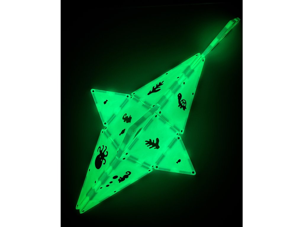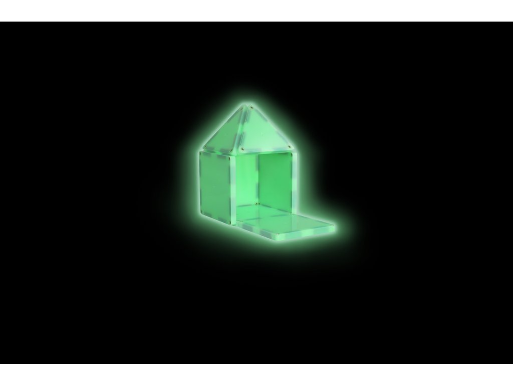 Magnetická stavebnica Glow 16 dielov Postavte si svietiaci hrad alebo raketu S jedinečnými žiariacimi magnetickými dielikmi vytvoríte svietiace hrady či rakety. Sada obsahuje dieliky, ktoré svietia v tme a predstavujú zábavný a originálny doplnok k existujúcim sadám Magna-Tiles. Žiarivá vlastnosť magnetických dielikov sa aktivuje pri priamom kontakte so slnečnými lúčmi alebo pomocou svetla z priloženého zdroja. Ako to funguje? Dlaždice obsahujú fosfor, bezpečný a prirodzene sa vyskytujúci minerál, ktorý po nabití energiou vyžaruje svetlo.Zmysluplná stavebnica pre malých staviteľov Magna-Tiles je zástancom zmysluplnej hry, to znamená zábavnej a pútavej, no zároveň založenej na rozvíjaní detských zručností. Táto stavebnica podporuje rozvoj koordinácie ruka-oko, jemnej motoriky a logického myslenia prostredníctvom skúmania príčiny a následku. Bezpečnosť a špičková kvalita sú zaistené použitím potravinárskeho, netoxického plastu MABS bez BPA, ftalátov a latexu. Pevná konštrukcia dielikov zabraňuje praskaniu a udržiava magnety bezpečne na svojom mieste.Sada obsahuje 16 magnetických dielikov:4x štvorec,4x pravý trojuholník,4x rovnostranný trojuholník,4x rovnoramenný trojuholník,1x LED svetlo na kľúče.Dodatočné parametre