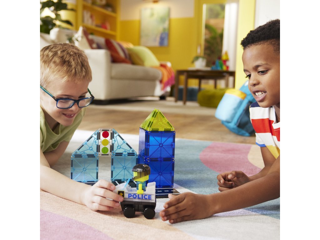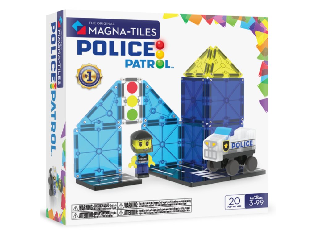 Magnetická stavebnica Police Patrol 20 dielov Hliadkuj, stavaj a zachraňuj – tvoja misia začína práve teraz! Staň sa strážcom svojho magnetického sveta! S touto stavebnicou Magna-Tiles® Police Patrol sa každé dieťa zmení na skutočného ochráncu mesta – postaví vlastné vozidlo, vymyslí akčné príbehy a bude hliadkovať ulicami plnými dobrodružstiev. Fantázia tu nepozná hranice!Čo robí túto stavebnicu výnimočnou? Univerzálne vozidlo – umožňuje navrhovať rôzne typy vozidiel, od áut po skateboardy.Mix & Match figúrka policajta – vymieňateľné časti pre nekonečné kombinácie a zábavu.Dlaždica so semaforom microMAGS – nová úroveň hry plná pravidiel a poriadku.Plne kompatibilná s ostatnými sadami Magna-Tiles® – Viac dielov = viac možností.Prečo si ju deti aj rodičia zamilujú? Podporuje kreativitu a samostatnosť – Stavanie bez návodu? Áno, prosím!Rozvíja jemnú motoriku, koordináciu ruka-oko a logiku – Učenie hrou nebolo nikdy zábavnejšie.Perfektný darček pre malých dobrodruhov – Odporúčané pre deti od 3 rokov.Bezpečné a odolné prevedenie – Sú vyrobené tak, aby vydržali nespočetné hodiny hrania a neobsahujú BPA, ftaláty ani latex.Navrhnuté pre zmysluplnú hru – Bez potreby asistencie dospelých, len čistá radosť.Dodatočné parametre