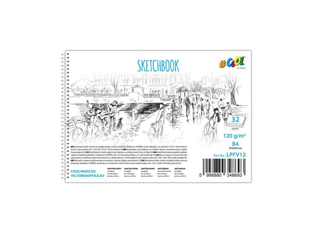 Náčrtník, bezdrevný, 32 listový, B4, špirálový, 120 g, COOL BY VICTORIA