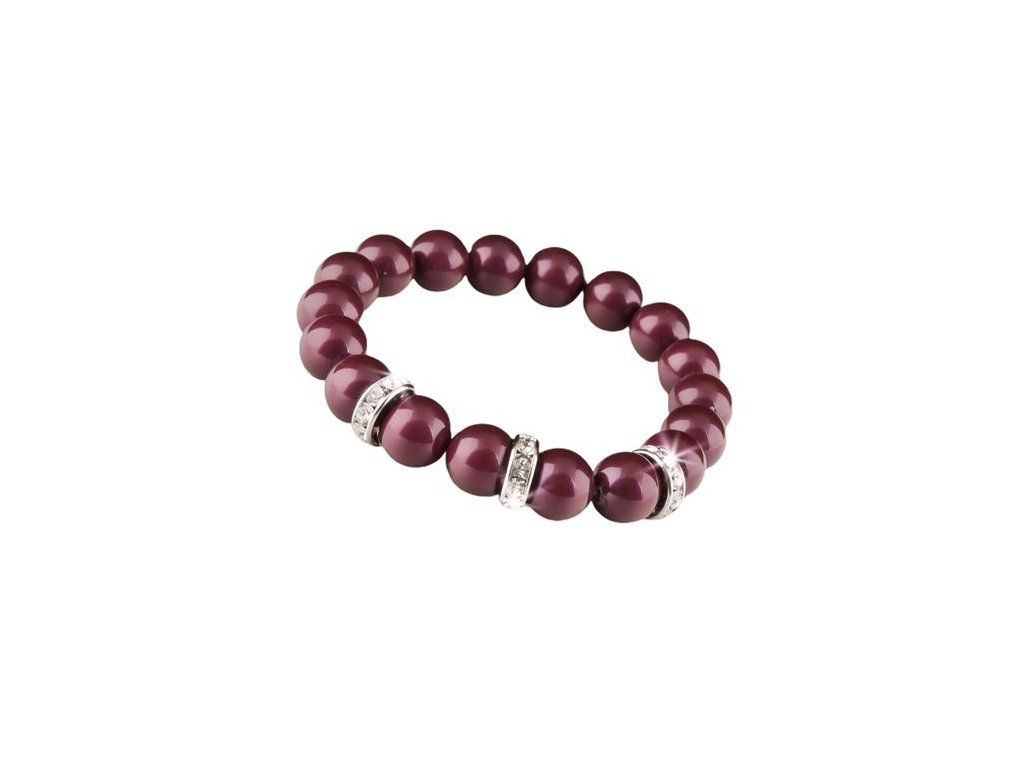 Náramok, z burgundy červených SWAROVSKI® perál, s bielym rondella krištáľom, 10 mm, veľ. M, ART CRYSTELLA®