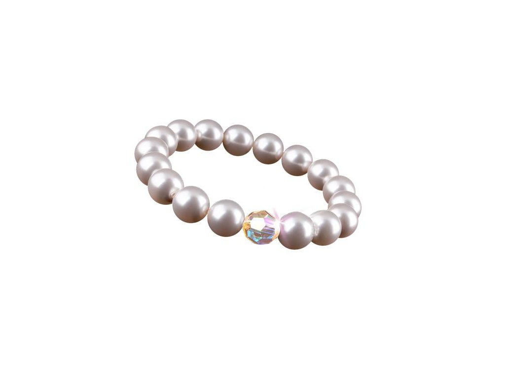 Náramok, z perleťovo bielych SWAROVSKI® perál, s dúhovým bielym krištáľom, 10 mm, ART CRYSTELLA®, M